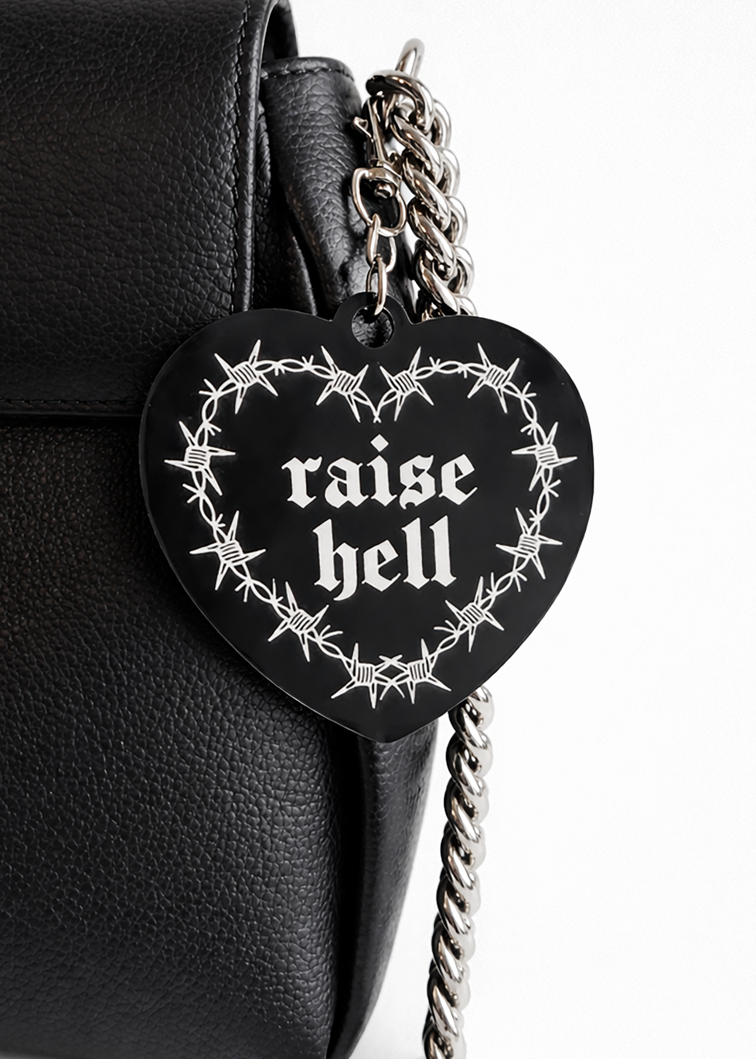 Carry a little attitude wherever you go with the black heart bag charm. With a “raise hell” design on one side and “hell flower / bloom louder” on the reverse, it’s the perfect daily reminder to stay unapologetically yourself.